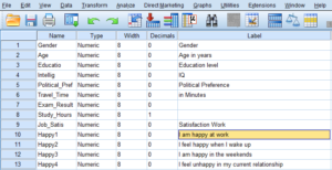 Geef de vragen van de gevalideerde vragenlijst een duidelijke naam, zodat je later makkelijk terug kan vinden welke vraag van jouw vragenlijst bij welke oorspronkelijke vraag van de vragenlijst hoort. Bijvoorbeeld: SiteGebruikVriend1 (beetje ingekort) SiteGebruikVriend2 voor de afhankelijke variabele en Siteversie als onafhankelijke variabele. Je gebruikt het ‘label’ in SPSS in de ‘variable view’ om te zien wat de letterlijke vragen zijn. Doe dit, het maakt je werk later veel makkelijker wanneer je factoranalyse/betrouwbaarheidsanalyse gaat uitvoeren.